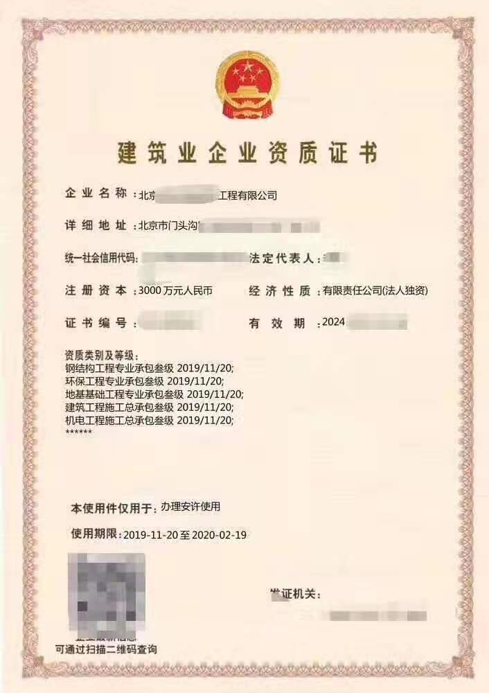 北京12项资质,建筑总包三+机电总包三+智能化二+消防二+机电安装三+幕墙二+装饰二-国信企航(北京)企业管理有限公司发布日期:2020-8-27